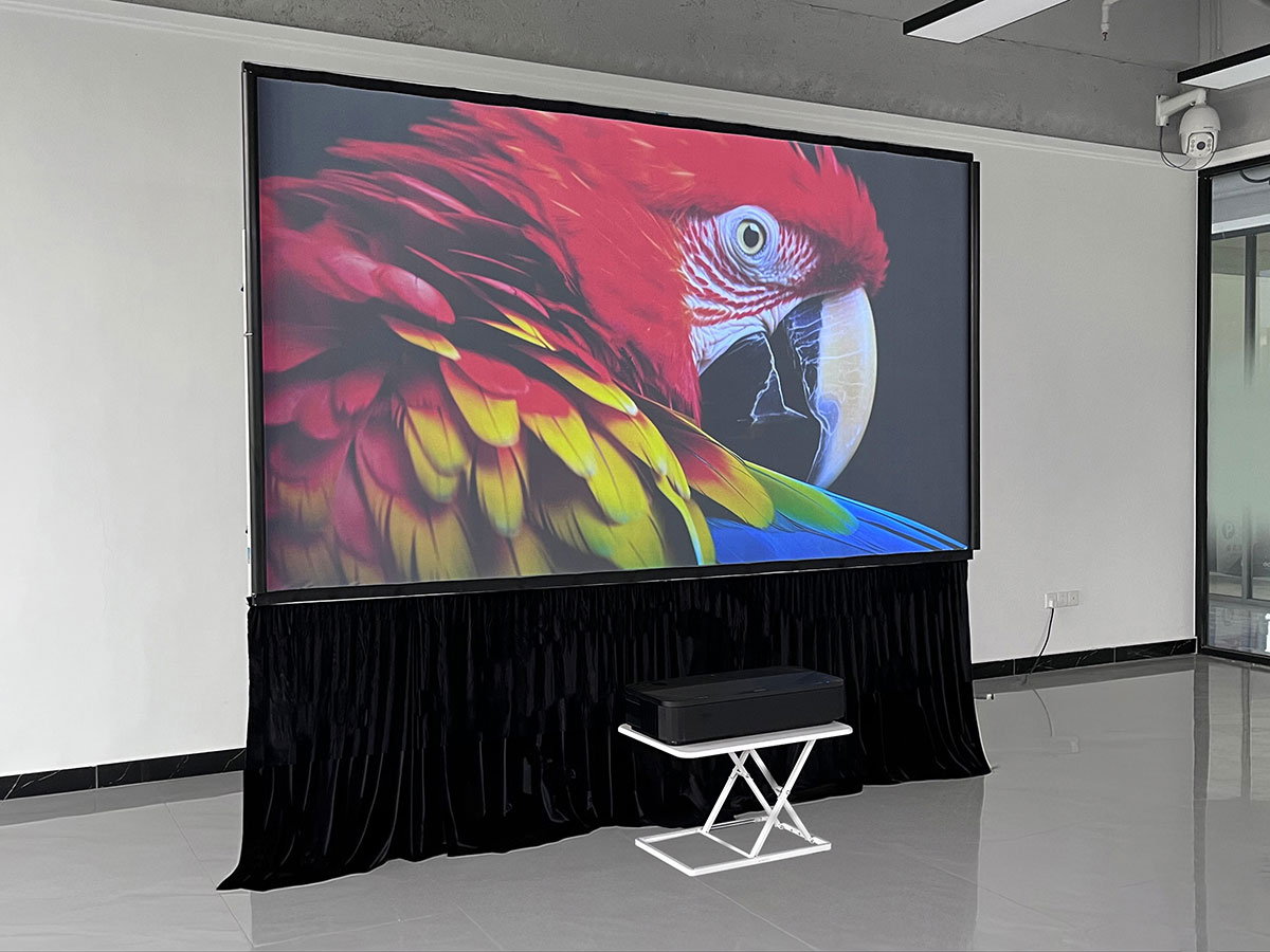 - Micro-serriform lenticular structure design to properly reflect projector light to viewer’s eyes and filter out ceiling lights