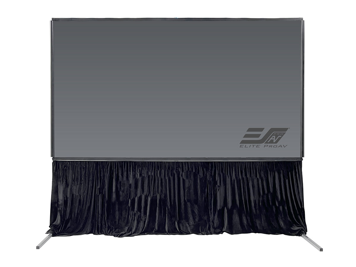 - Material stretches on frame using corner pull-tabs with snap buttons and Velcro on the sides to provide a flat and taut projection surface